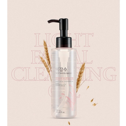 The Face Shop Rice Water Bright Light Facial Cleansing Oil, 150mL | Daily Makeup Remover, Oil Cleanser, Vegan, Korean Skin Care with Jojoba Oil, Face Wash for Sensitive