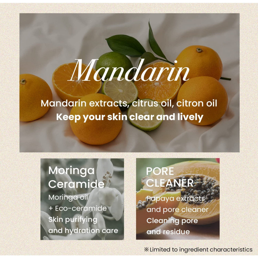 - Washes off easily with water without leaving any residue. Contains a mild mandarin scent that does not linger on your skin.