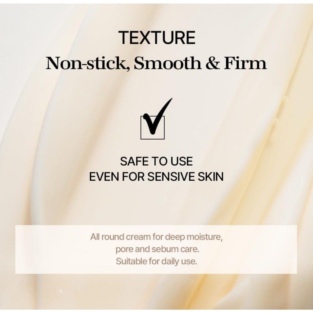 - Texture: a smooth and thick cream full of nutrients that provides dull skin with vitality without any stickiness. It only maintains thick and moist moisture