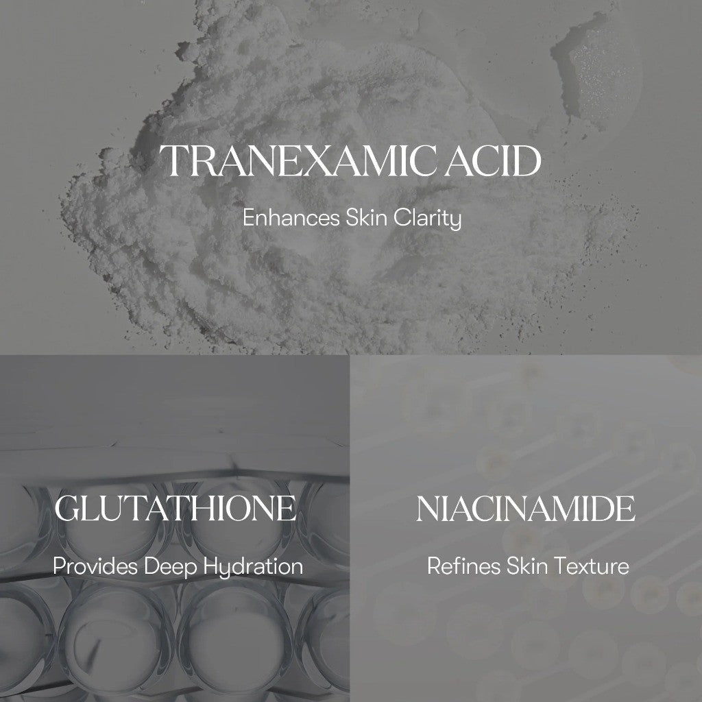 Experience 3-Step Care with Tranexamic Acid, Glutathione, and Niacinamideโa powerful combination that supports skin hydration, clarity, and a naturally radiant glow.