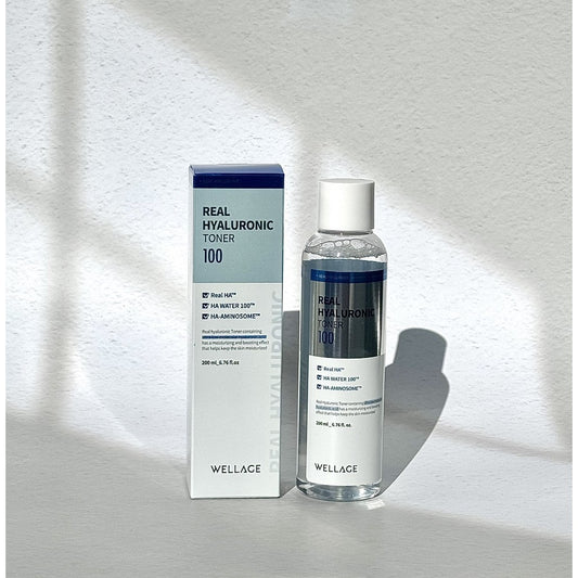 WELLAGE Real Hyaluronic Toner 100, 200mL | 93% High Purity Low-Molecular Hyaluronic Acid Face Toner