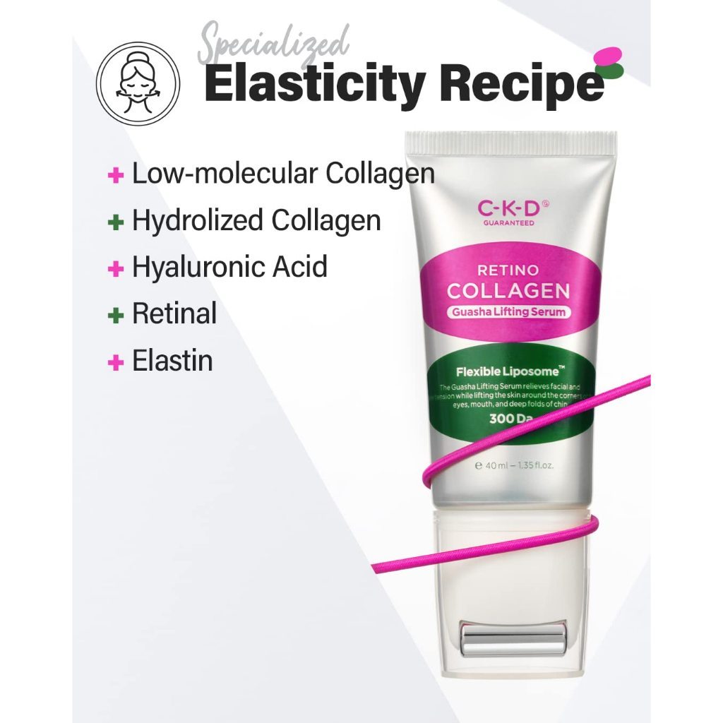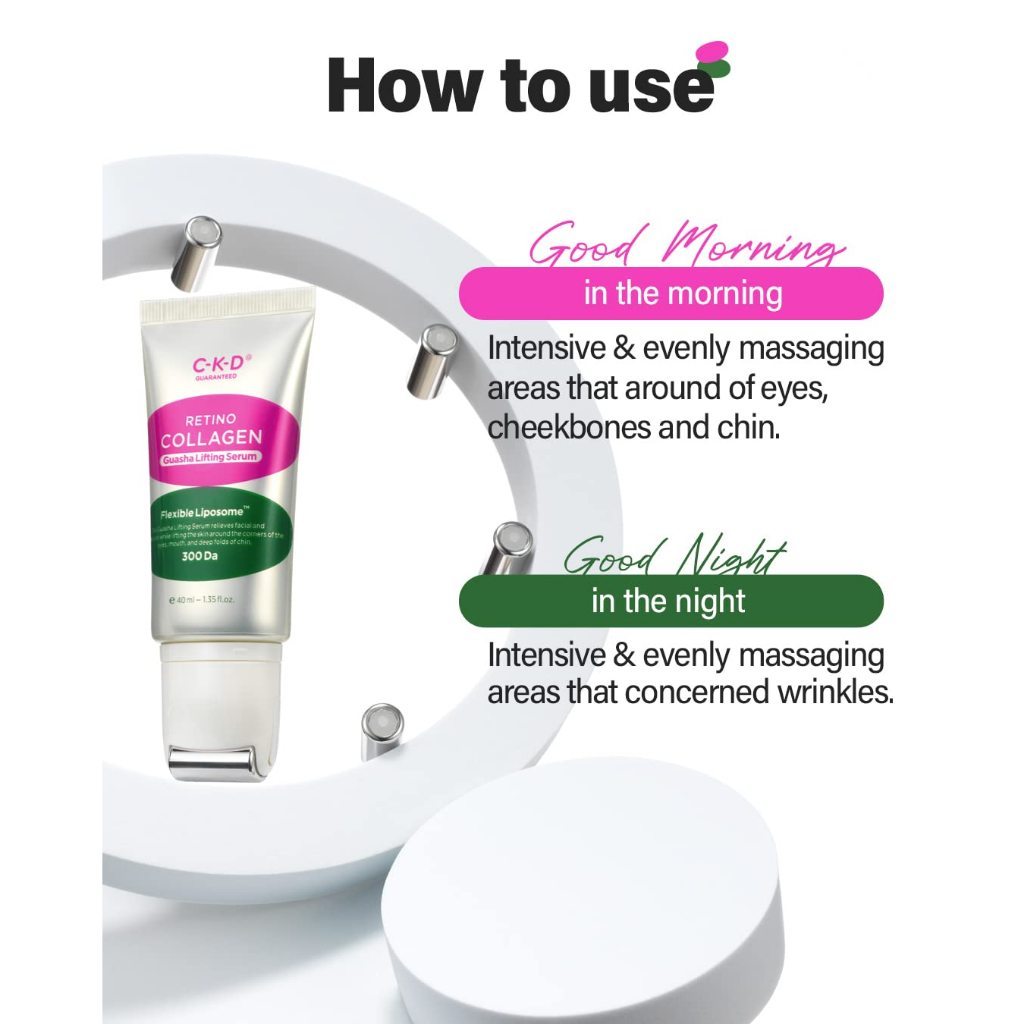 REMARKABLE SKIN SMOOTHING AND FIRMING: CKD Retino Collagen Small Molecule 300 Guasha Lifting Serum is a state-of-the-art skincare product that instantly improves skin texture and saggy skin, resulting in a more defined jawline.