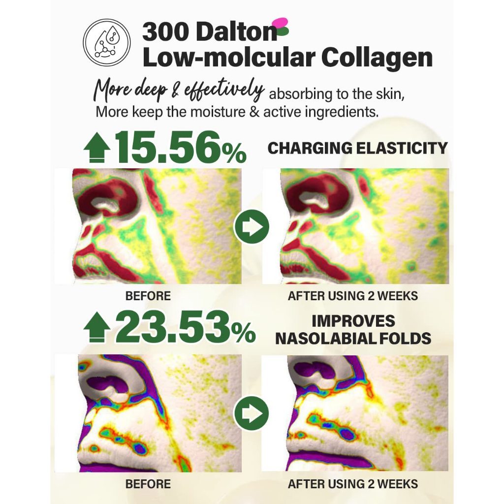 The 71.73% low-molecular weight collagen extract helps in collagen generation, providing enhanced skin firmness and effectively filling wrinkles for a youthful appearance.