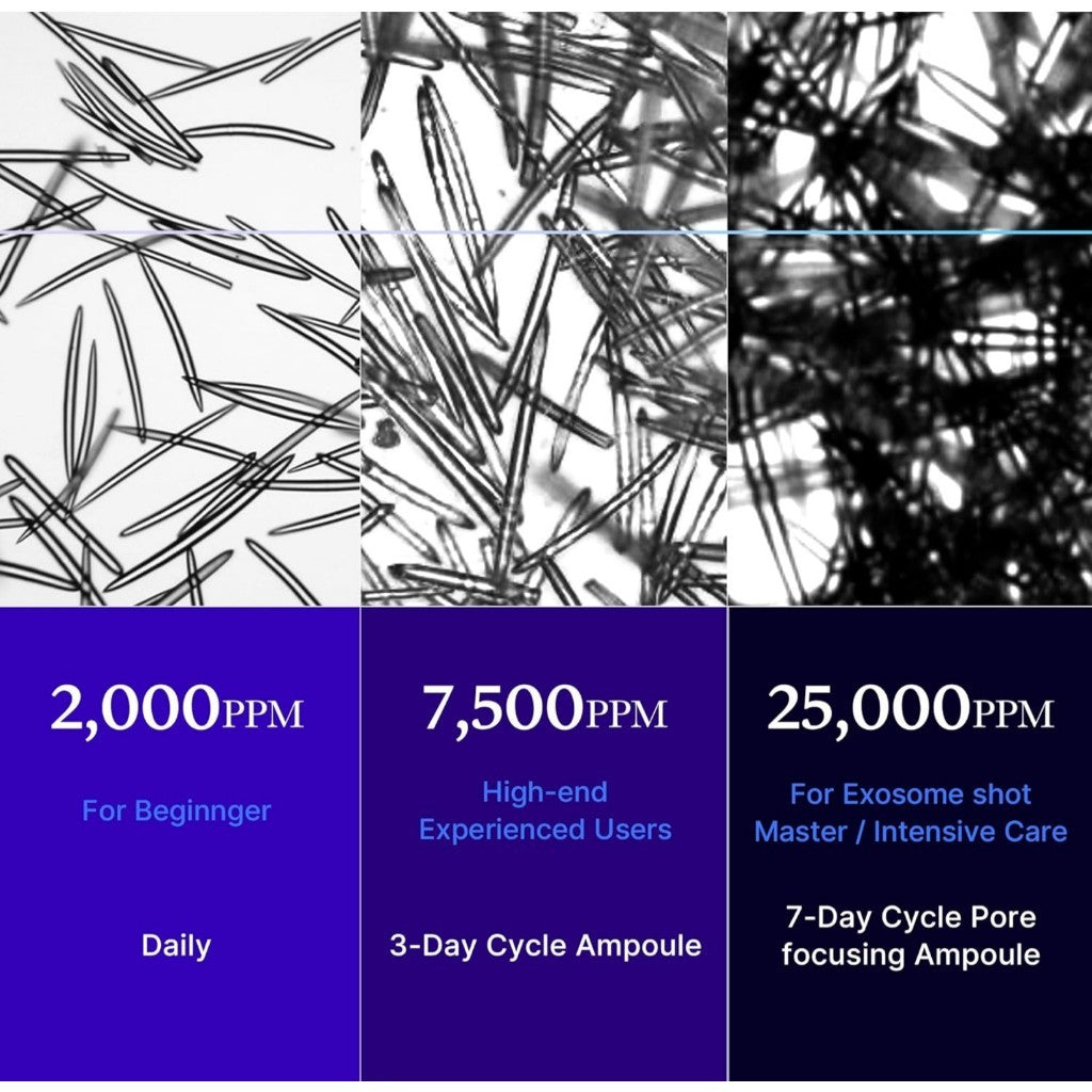 Featuring a micro-sized, needle-shaped design and enriched with 15M patented Exosome shots, this booster provides targeted care, delivering active ingredients to the skin for a revitalized look.
