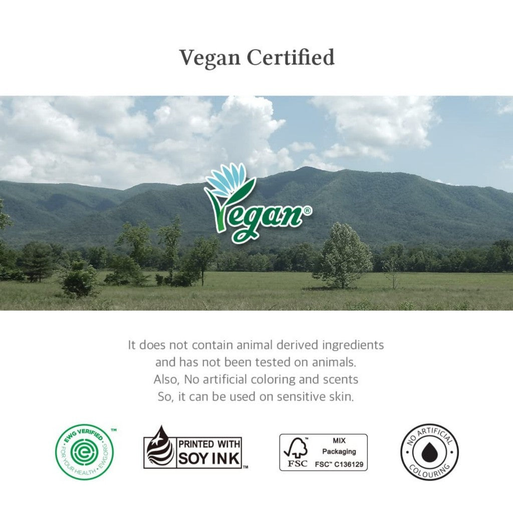 - Vegan Certified - It is vegan certified and has not beed tested on animals. Also, No aritificial coloring and scents So, it can be used on sensitive skin.