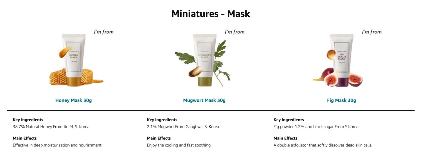 [MINI] I'm From Mask Miniature Collection 30g (5 Types) │ Honey / Fig Scrub / Mugwort / Beet Purifying / Rice Mask
