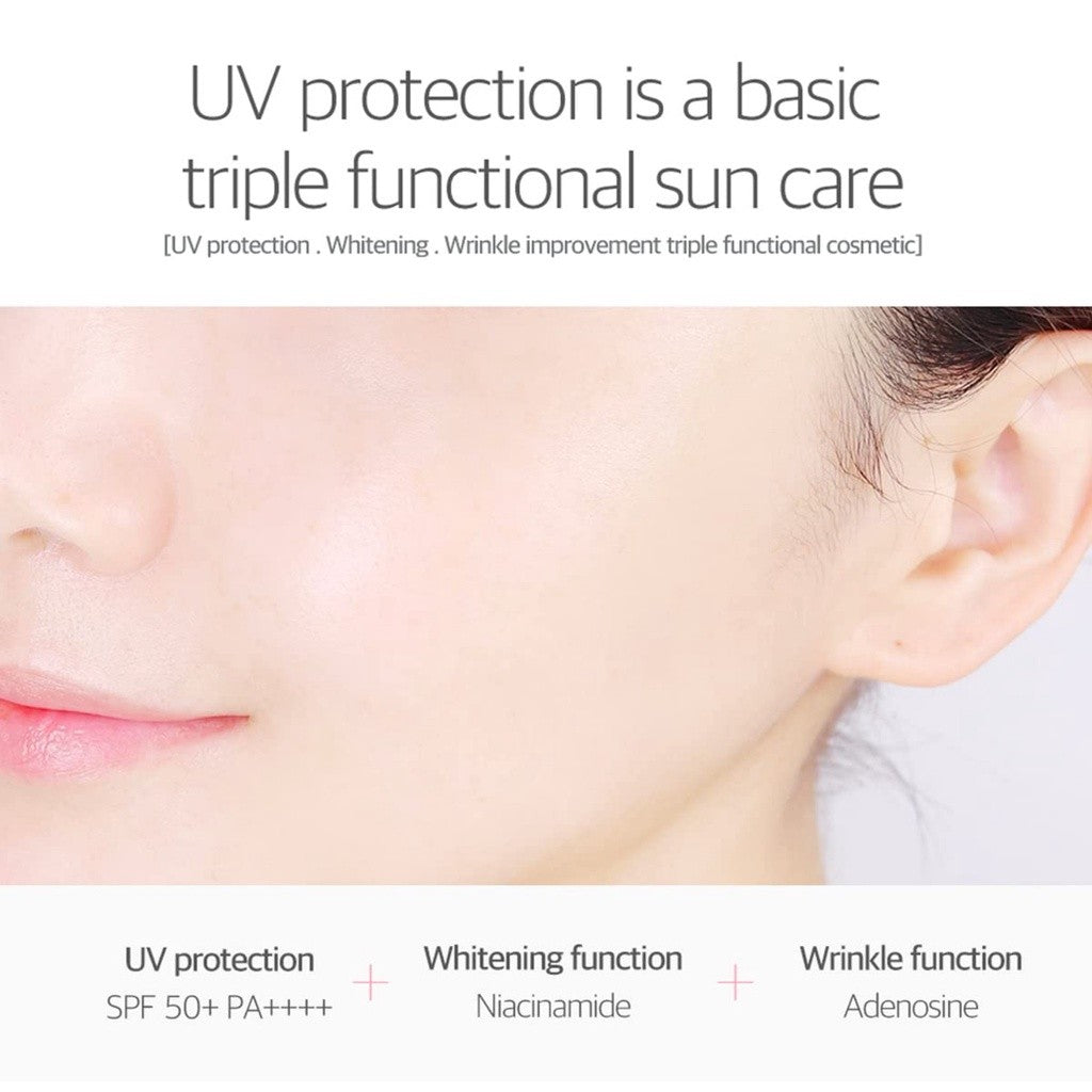 - UV protection is a basic triple functional sun care [UV protection . Whitening . Wrinkle improvement triple functional cosmetic]
