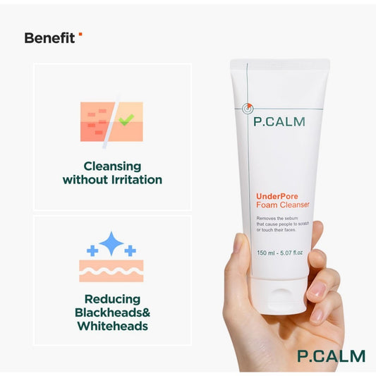P.CALM UnderPore Foam Cleanser 150ml | Vegan Gentle Deep Pore Cleansing Facial Wash for Sensitive Skin