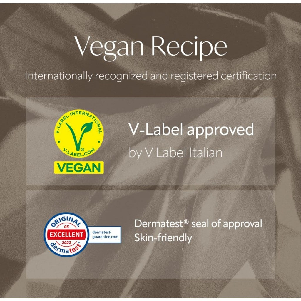 Certified Vegan after meticulous testing by Italian V-label, 50,000ppm of high concentrated Volufiline also patented for elasticity by Sederma in France, provides intense hydration, nourishment, and elasticity care.