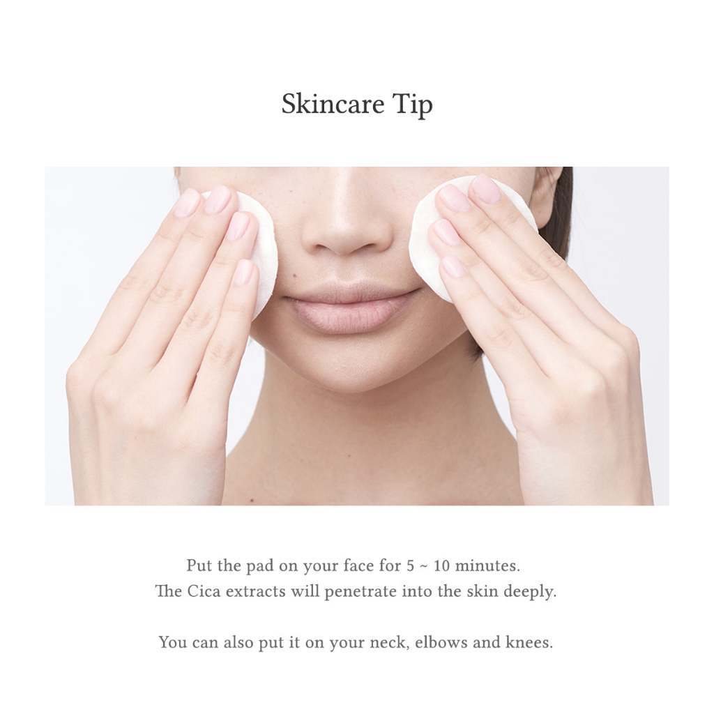 Cica Skin Calming Pad is a two-step double-sided pad that contains 85% of Cica Extract rather than purified water.
