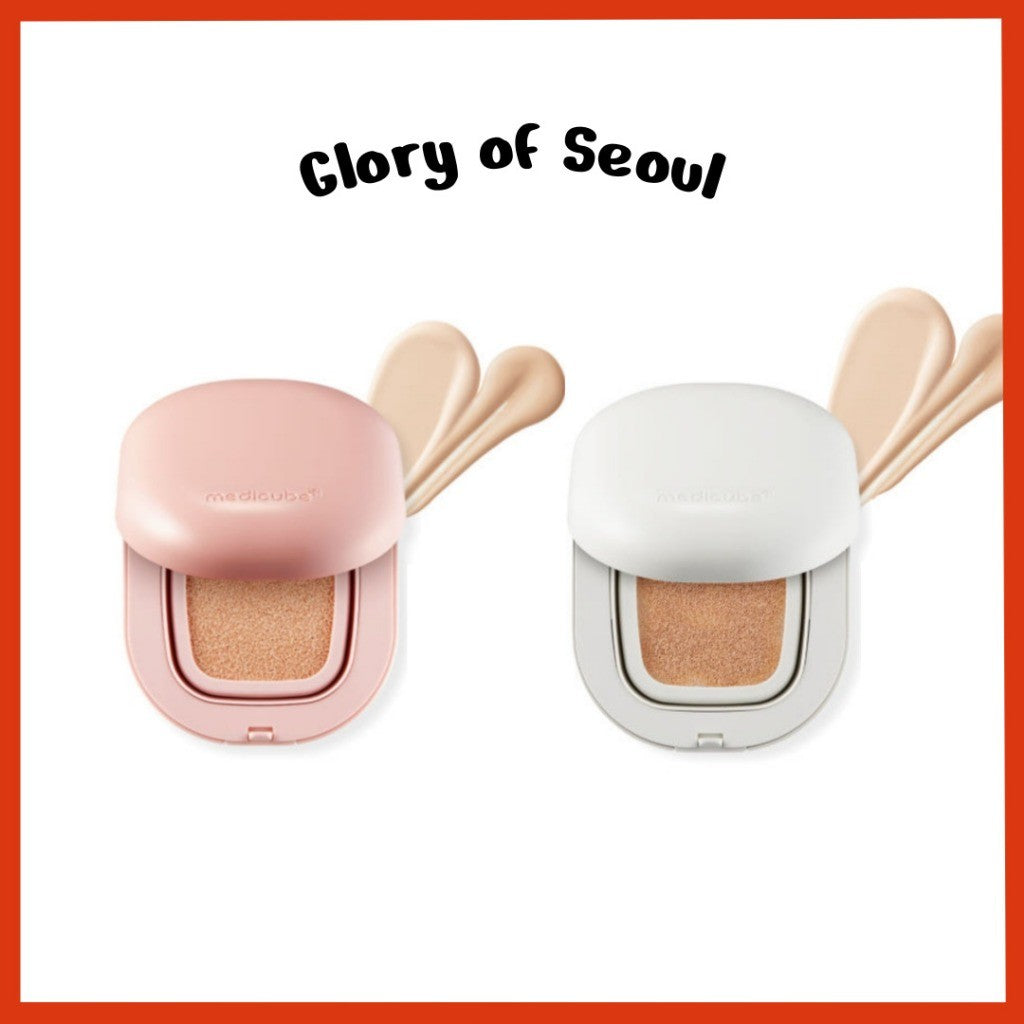 MEDICUBE Pro Glutathione Cushion, 15g 2Types (Glow / Velvet) | SPF40 PA++ 1. MEDICUBE Pro Glutathione Glow Cushion 15g This cushion gives your skin a long-lasting glow while covering blemishes, redness, and pore naturally. Contains Glutathione and Collagen to create a healthy glow and give a lifting effect. 4-layered premium puff adheres to your skin tightly with a comfortable finish. Triple functional product for brightening, wrinkle improvement, and UV protection. 2. MEDICUBE Pro Glutathione Velvet Cushion 15g This cushion provides strong cover for skin texture and blemishes with a velvet matte finish. Contains Glutathione and aqua ceramide to provide a long-lasting flawless skin look. 4-layered premium puff adheres to your skin tightly with a comfortable finish. Triple functional product for brightening, wrinkle improvement, and UV protection. - Colors: #21 Ivory. #23 Beige - How to use Take an appropriate amount of the contents onto the puff and pat along the skin texture to adhere it to the skin. * Be sure to close the lid of the container containing the contents after use. If you do not close the lid after use, the moisturizing and other ingredients that are effective for the skin may evaporate, causing the contents to shrink.
