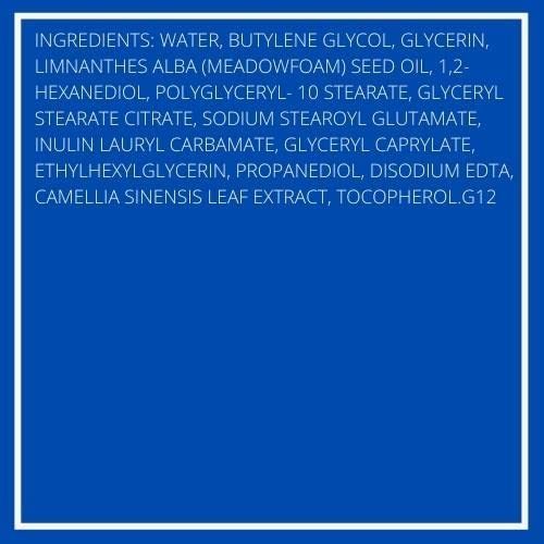 Water, Butylene Glycol, Glycerin, Limnanthes Alba (Meadowfoam) Seed Oil, 1,2-Hexanediol, Polyglyceryl-10 Stearate, Glyceryl Stearate Citrate, Sodium Stearoyl Glutamate, Inulin Lauryl Carbamate, Glyceryl Caprylate, Ethylhexylglycerin, Propanediol, Disodium EDTA, Camellia Sinensis Leaf Extract, Tocopherol