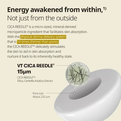 MAIN INGREDIENTS CICA REEDLE® + CICAHYALON™ + Black Truffle Extract 30,000ppm With the ultra-fine particle ingredient CICA REEDLE™ that enhances absorption, combined with VT's exclusive moisturizing and soothing ingredient CICAHYALON™, and enriched with Black Truffle Extract, known as the "diamond of the earth," it delivers powerful and firming nutrition energy to weakened skin.