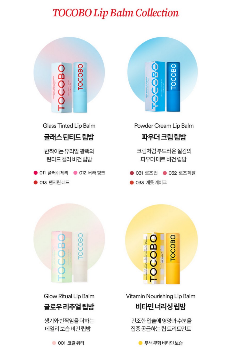 [TOCOBO] Lip Balm Collection Glass Tinted Lip Balm / Powder Cream Lip Balm / Vitamin Nourishing Lip Balm 19g Moisturizing Vegan
