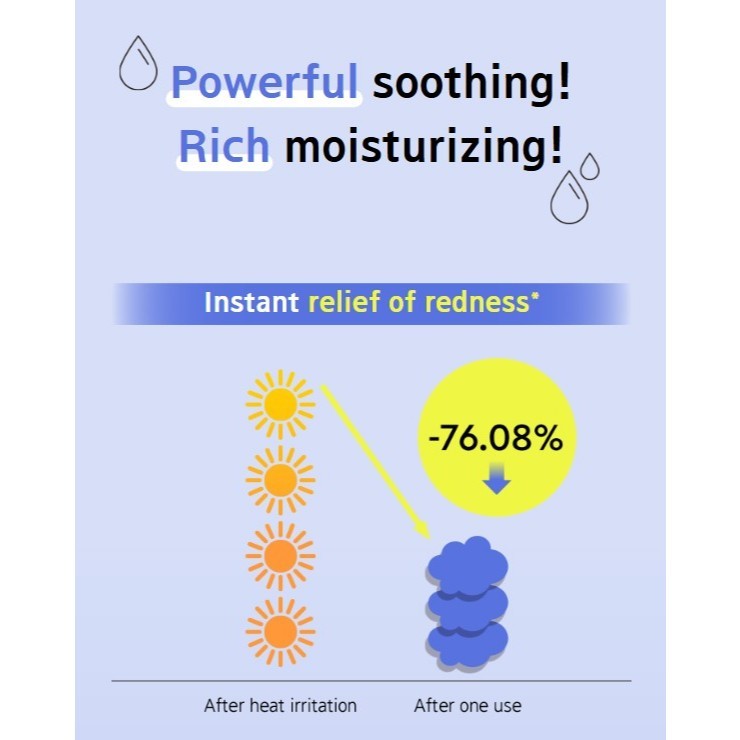 Instant soothing from the strong soothing power of azulene featuring 2.2x the effectiveness of cica.