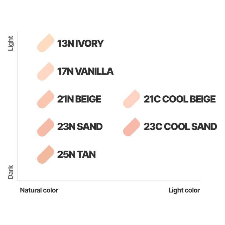 "N" is suitable for natural skin tones, and "C" is suitable for the cool skin tone.